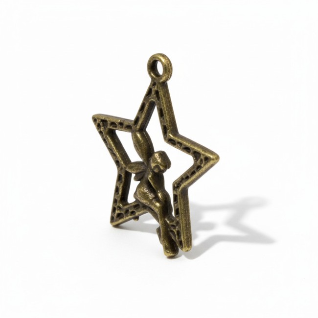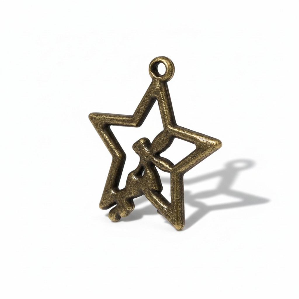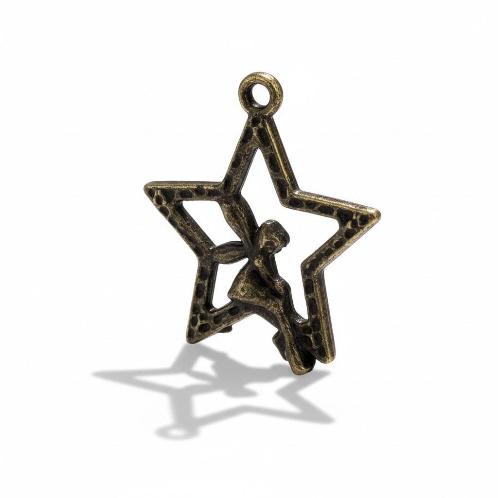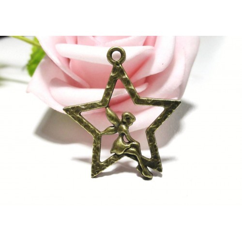 Lot composé de dix breloques petite fée assise sur l' étoile en métal coloris bronze;