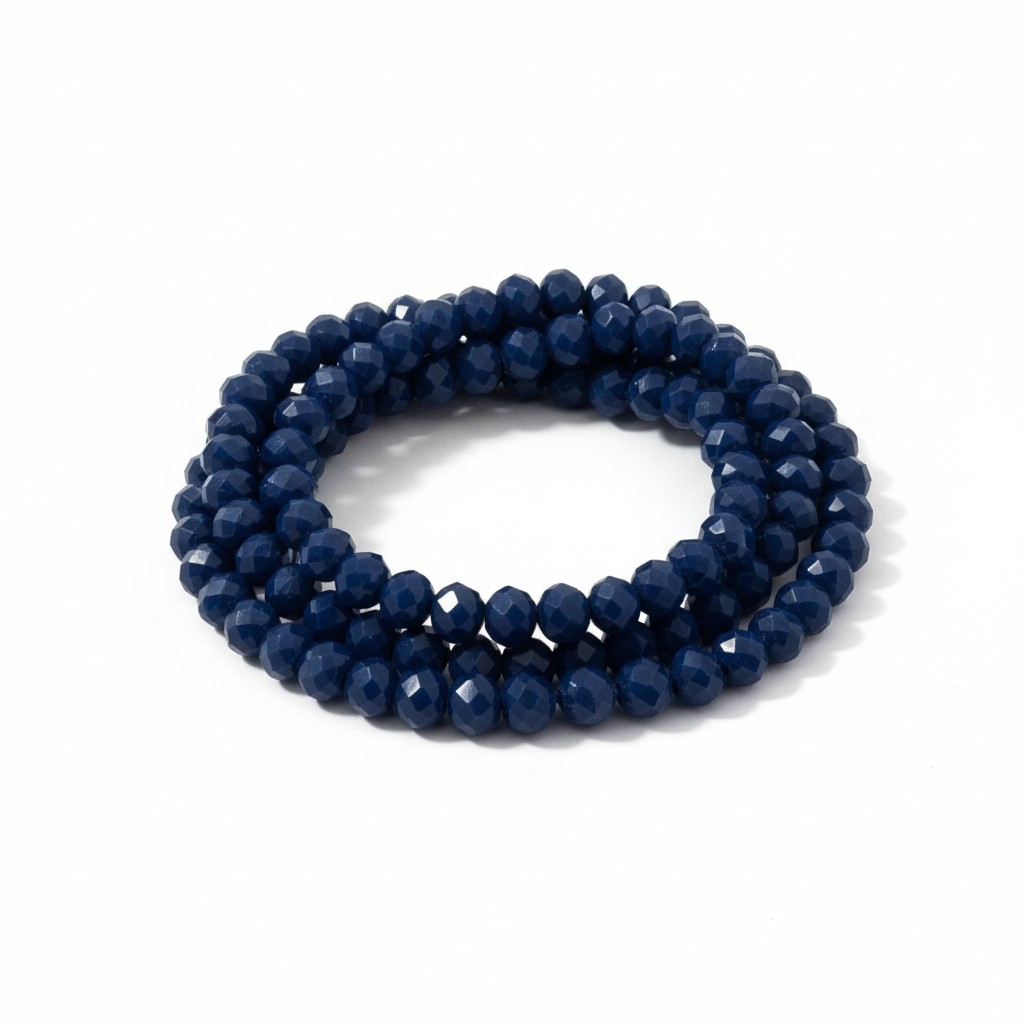 Lot de cinquante perles en verre facettées coloris bleu foncé.