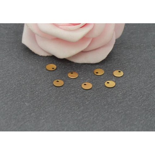 Lot de huit breloques sequins ronds en acier inoxydable 304 doré, placage ionique.