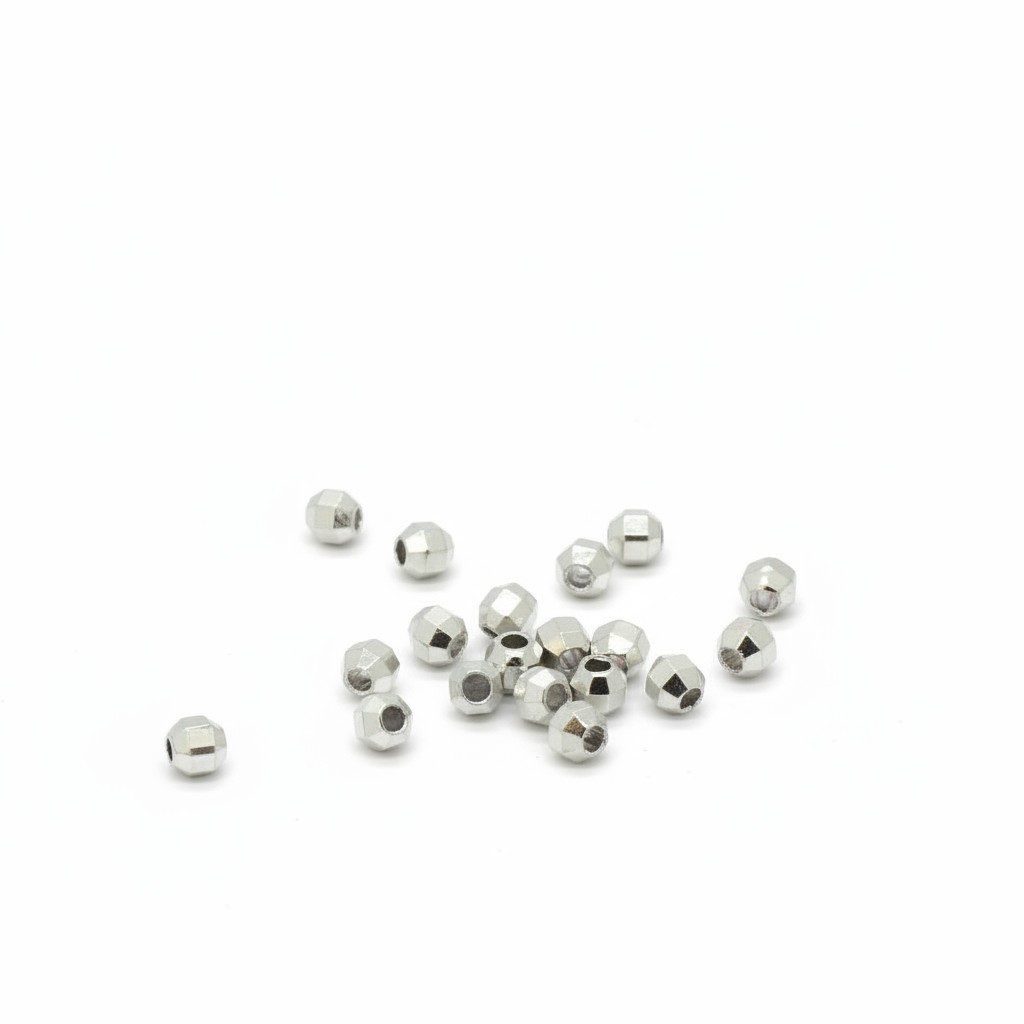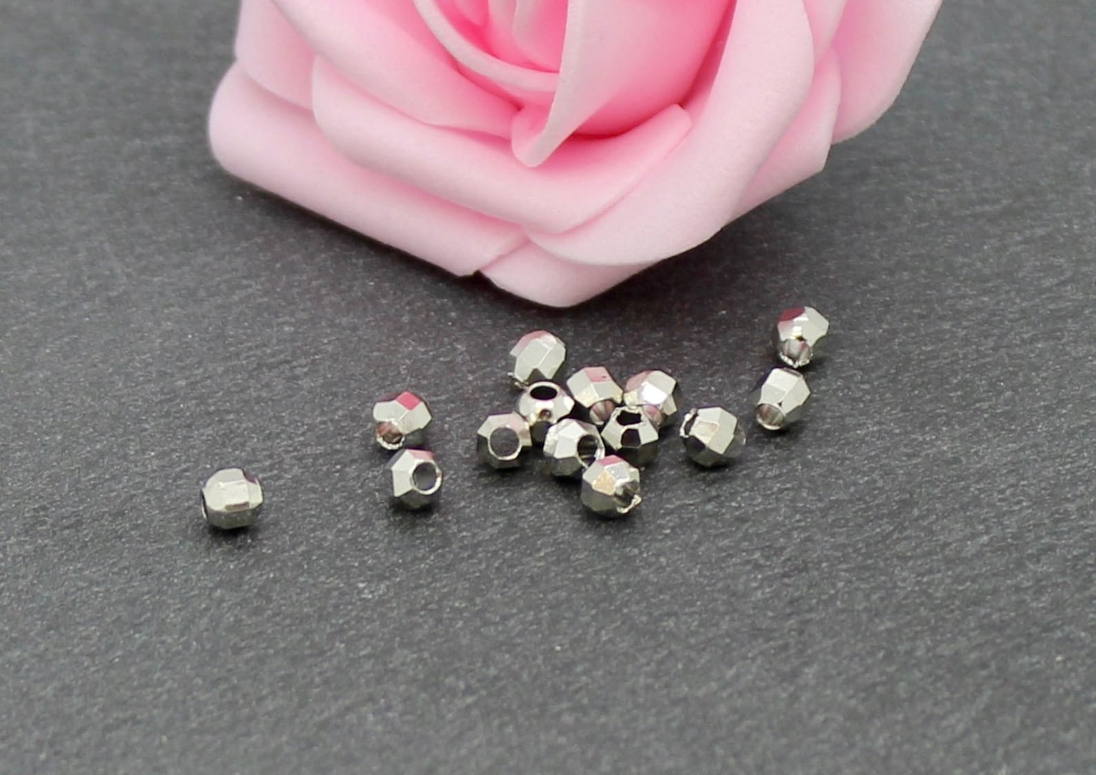 Lot composé de 20 perles facettées en cuivre argenté platine.