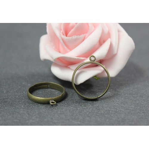 Lot composé de cinq supports de bagues réglables, un anneau en laiton coloris bronze garanti sans nickel sans plomb et sans cadmium.