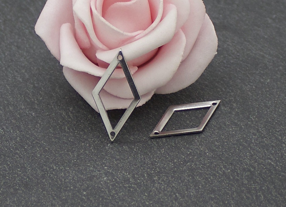 6 connecteurs losanges lisses et évidés en acier inoxydable de 24x13 mm BR755