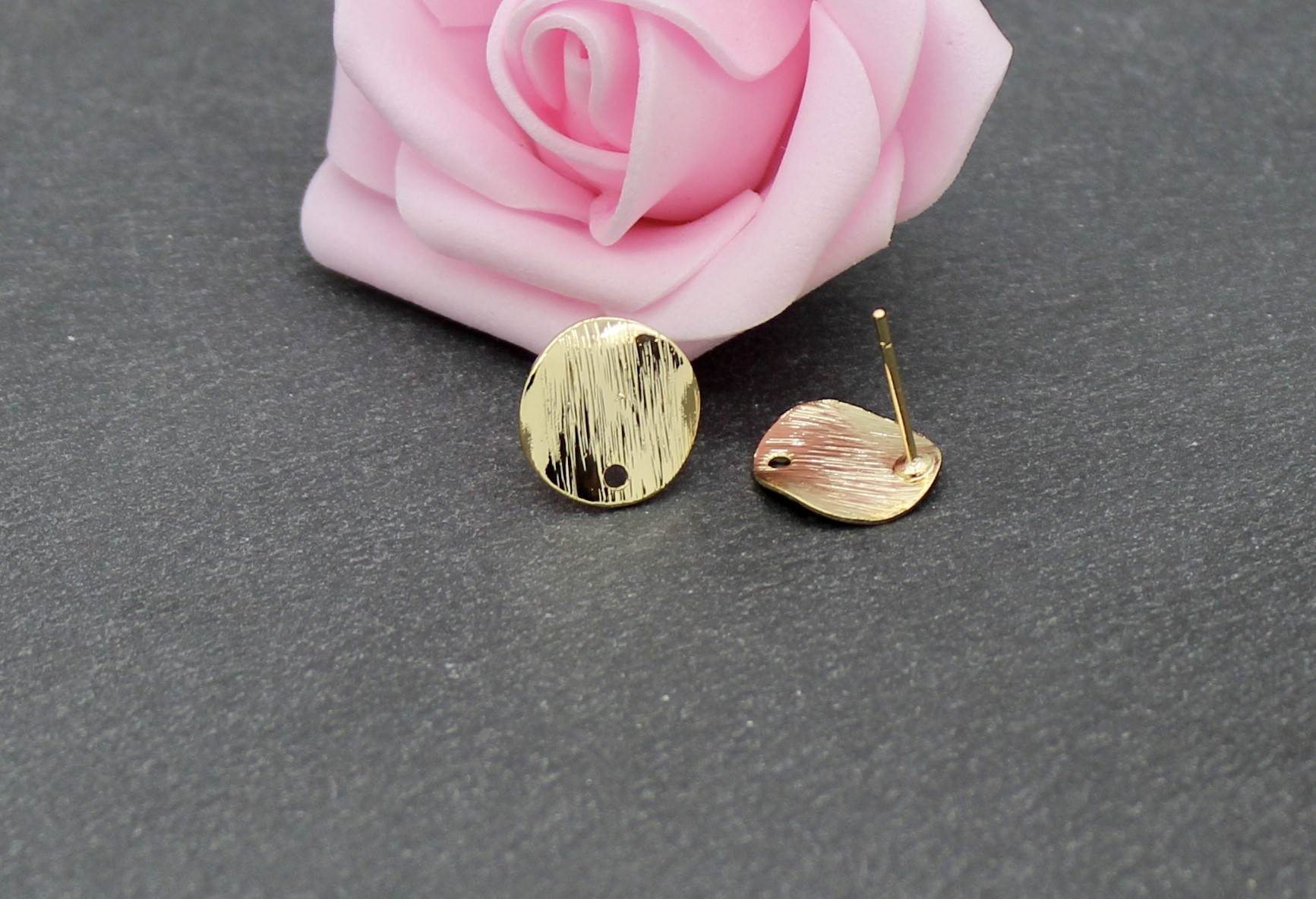 Deux paires de boucles d'oreilles puces effet froissé et ondulé en laiton plaqué or.