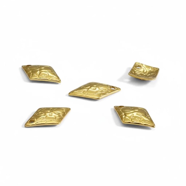 4 breloques losange texturées et incurvées, acier inoxydable plaqué or 18k, placage ionique, 16 x 9.5 mm, AC866Breloques Et Pendentifs Acier Inoxydable Doré