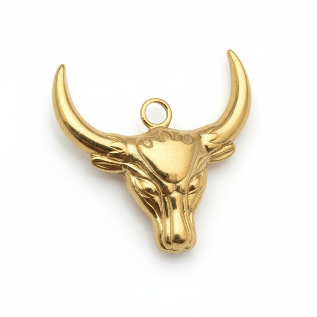 Un pendentif tête de taureau, acier inoxydable, plaqué or 18k, 24 x 25 mm, AC807Breloques Et Pendentifs Acier Inoxydable Doré