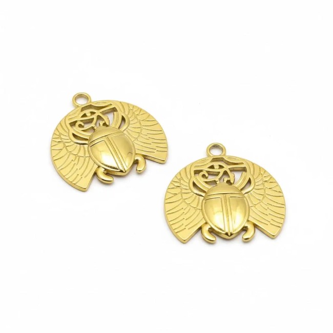 Un pendentif scarabée égyptien en acier inoxydable 304, placage ionique, plaqué or 18k, 25.5 x 25.5 mm, AC842Breloques Et Pendentifs Acier Inoxydable Doré