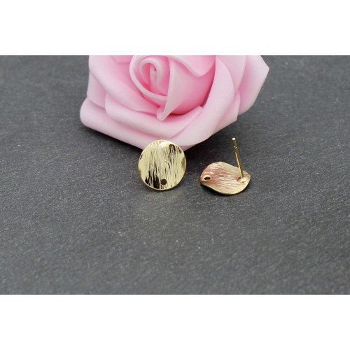 4 supports de boucles d'oreilles puces effet froissé et ondulé en laiton plaqué or, BOA50 Clous D'oreille Et Clips