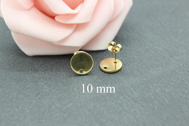 6 supports boucles d'oreilles puces ronds, acier inoxydable doré, de 10.5 mm, BOA83 Clous D'oreille Et Clips
