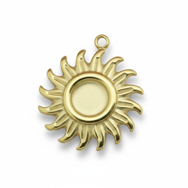 Pendentif rond, soleil gravé, pour cabochon 4 mm, acier inoxydable chirurgical 316L, placage ionique, AC927Supports Acier Inoxydable