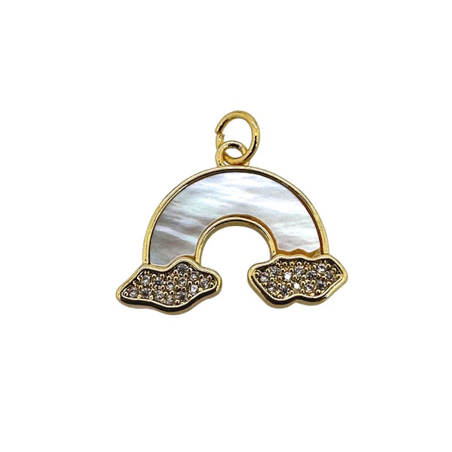 Pendentif arc en ciel en laiton plaqué or, zirons et coquillage, BR227Breloques Et Pendentifs Laiton Doré