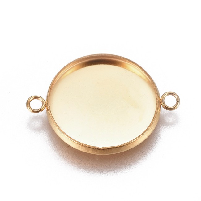 4 connecteurs ronds pour cabochon 16 mm, acier inoxydable 304 doré, placage ionique, BR559Supports Acier Inoxydable