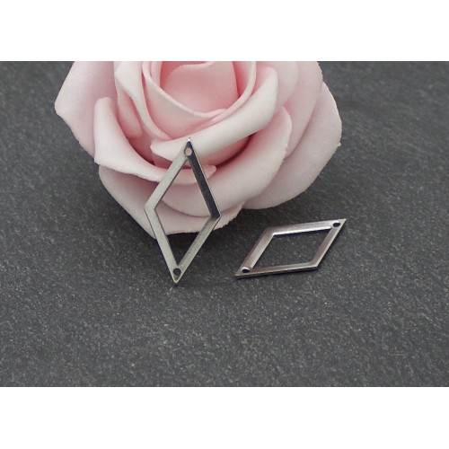 6 connecteurs losanges lisses et évidés en acier inoxydable de 24x13 mm BR755Connecteurs Acier Inoxydable