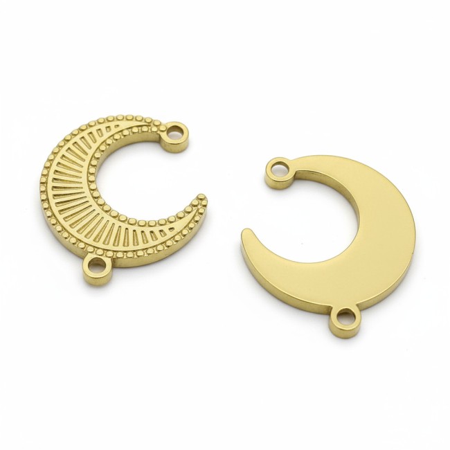 Deux connecteurs croissant de lune en acier inoxydable doré 201, AC26Connecteurs Acier Inoxydable Doré