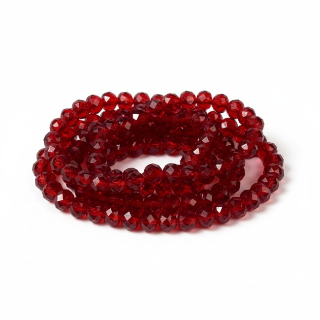 Un fil de 99 perles en verre rondes facettées 6 mm coloris rouge PV786 Mm