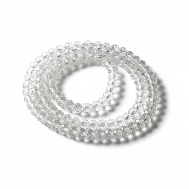Un fil de 100 perles en verre rondes facettées 6 mm coloris blanc transparent PV786 Mm